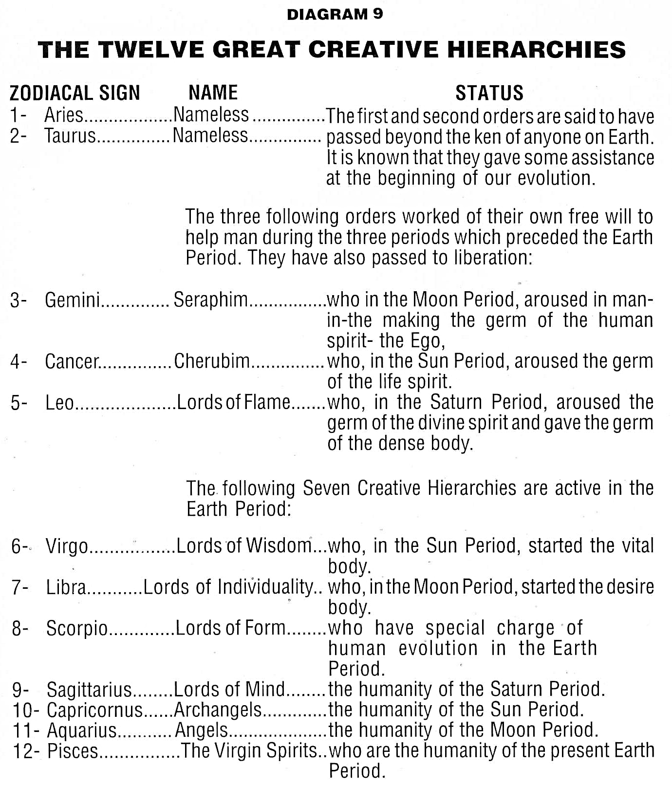 (Diagram 9 will give a clear idea of the twelve Creative Hierarchies and their status).