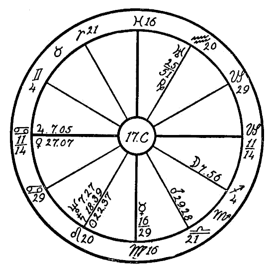 A pair of most interestingly similar charts, both in aspects and symptoms, will now be considered. We will first take figure No. 14C, that of a boy born November 25, 1899, 0:30 A.M.