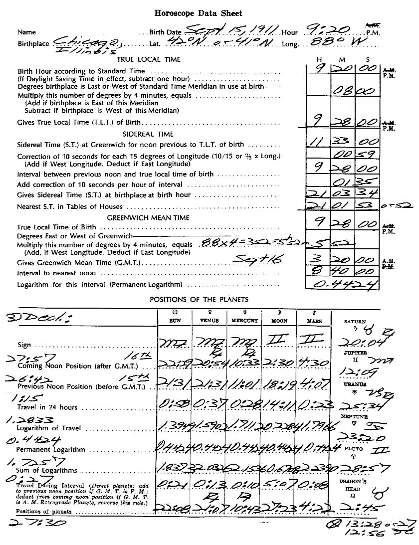 1. Cast a horoscope for September 12, 1911, 12:50 A.M. Seattle WA. (optional)