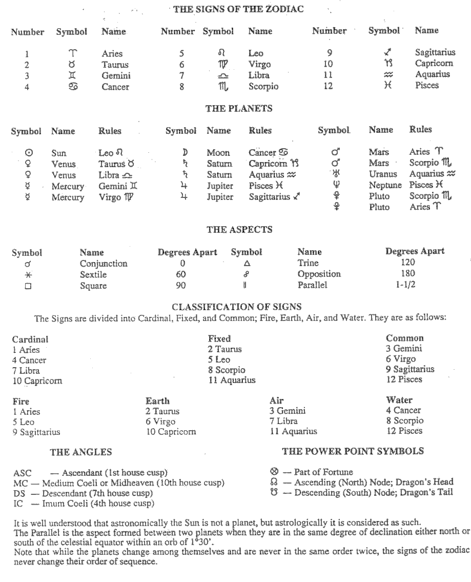 [Note: With the exception of the required chart calculation worksheets, you will find here all of the reference materials needed for the Astrology Self-Study Modules.]