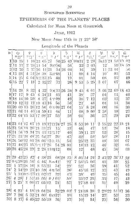 20. Simplified Scientific Ephemeris of the Planets' Places:
