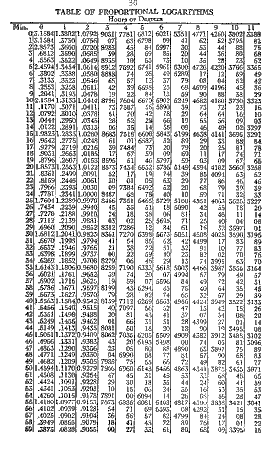 36. Table of Proportional Logarithms [Part 1 of 2] - Page 30