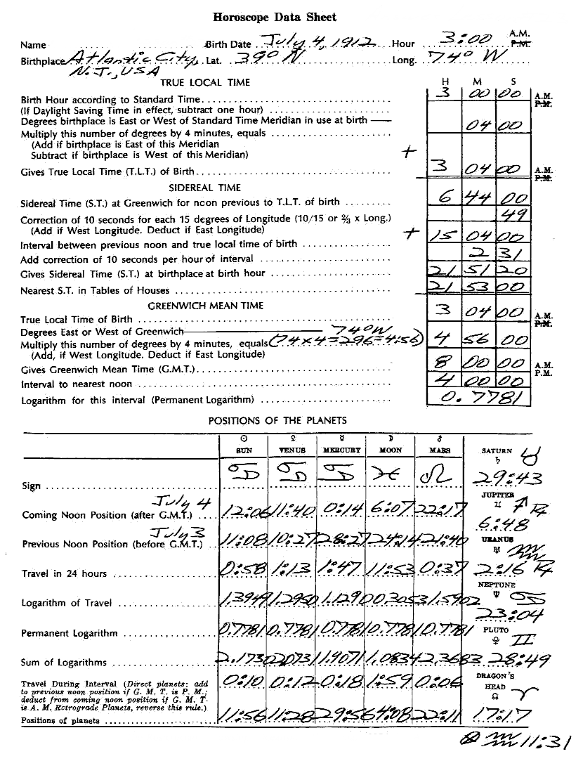 Horoscope Data Sheet: