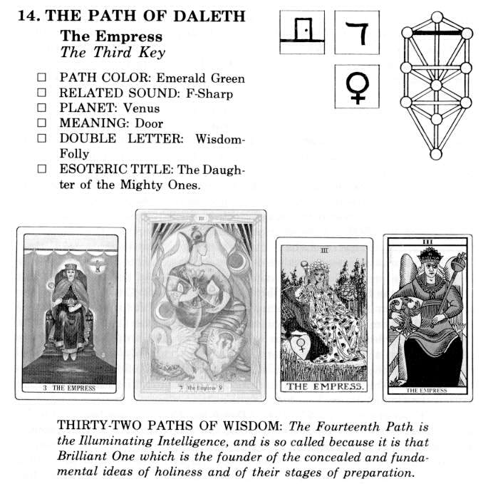 Daleth is thus the doorway to higher accomplishments, but it is also sometimes called the Cosmic Womb-the open passageway by which man descends life after life from the higher realms to gain renewed earth experiences in the great reincarnational cycle.