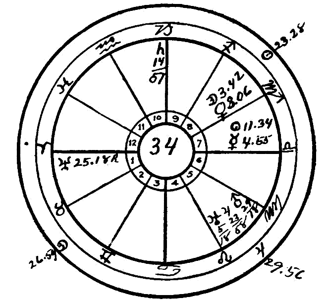 This is the horoscope of a young man born in Boynton, Missouri, October 11, 1889, at 6:00 P.M. It is a strange case which has puzzled all the doctors who have been consulted. About five years ago the joints in arms, —