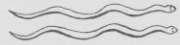 "I can't see anywhere to knock," he said to Zendah, but as he raised it in his hand, a flash like lightning flew from the top of the rod toward the green globe above the gate. Suddenly the shifting clouds cleared away and they saw that the globe rested on a tall green pillar. Across the middle of the gate were two snakes, a silver one at the top and another of bronze underneath — like this: